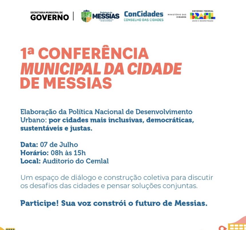 A Prefeitura de Messias, em parceria com o Governo de Alagoas e o Ministério das Cidades, convida toda a população para participar de um momento histórico para o futuro do município!