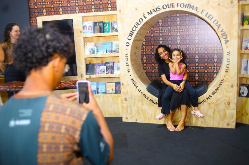O cenário convida o público a fazer uma pausa, refletir e registrar o momento em meio a livros de autores alagoanos e obras que celebram as identidades afro-brasileiras.